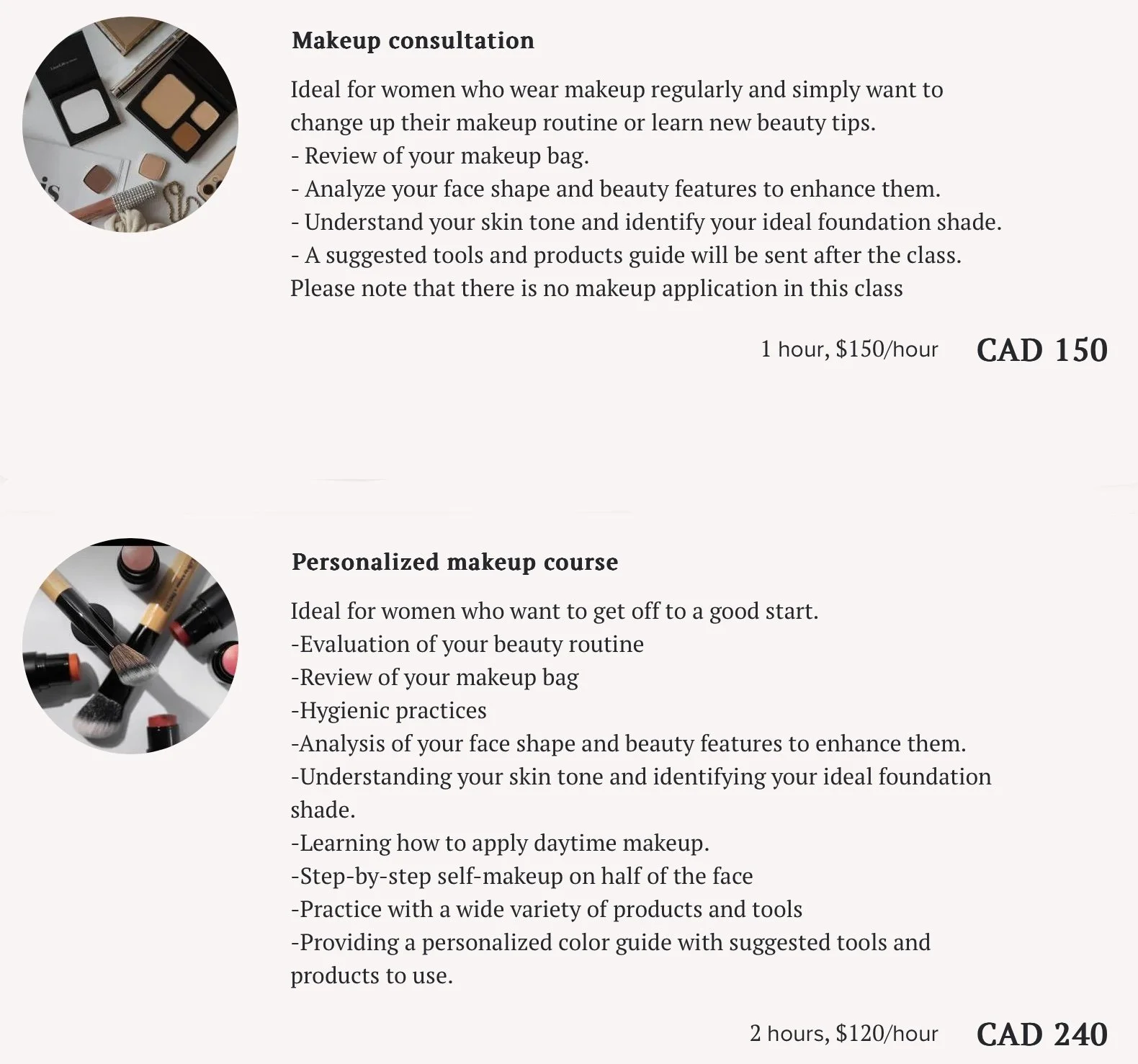 Suggested themes: makeup basics for teenagers, simplify your day to day makeup, face contouring makeup, how to create a smokey eye, day to evening makeup, how to apply false eyelashes, make-up for mature skin.